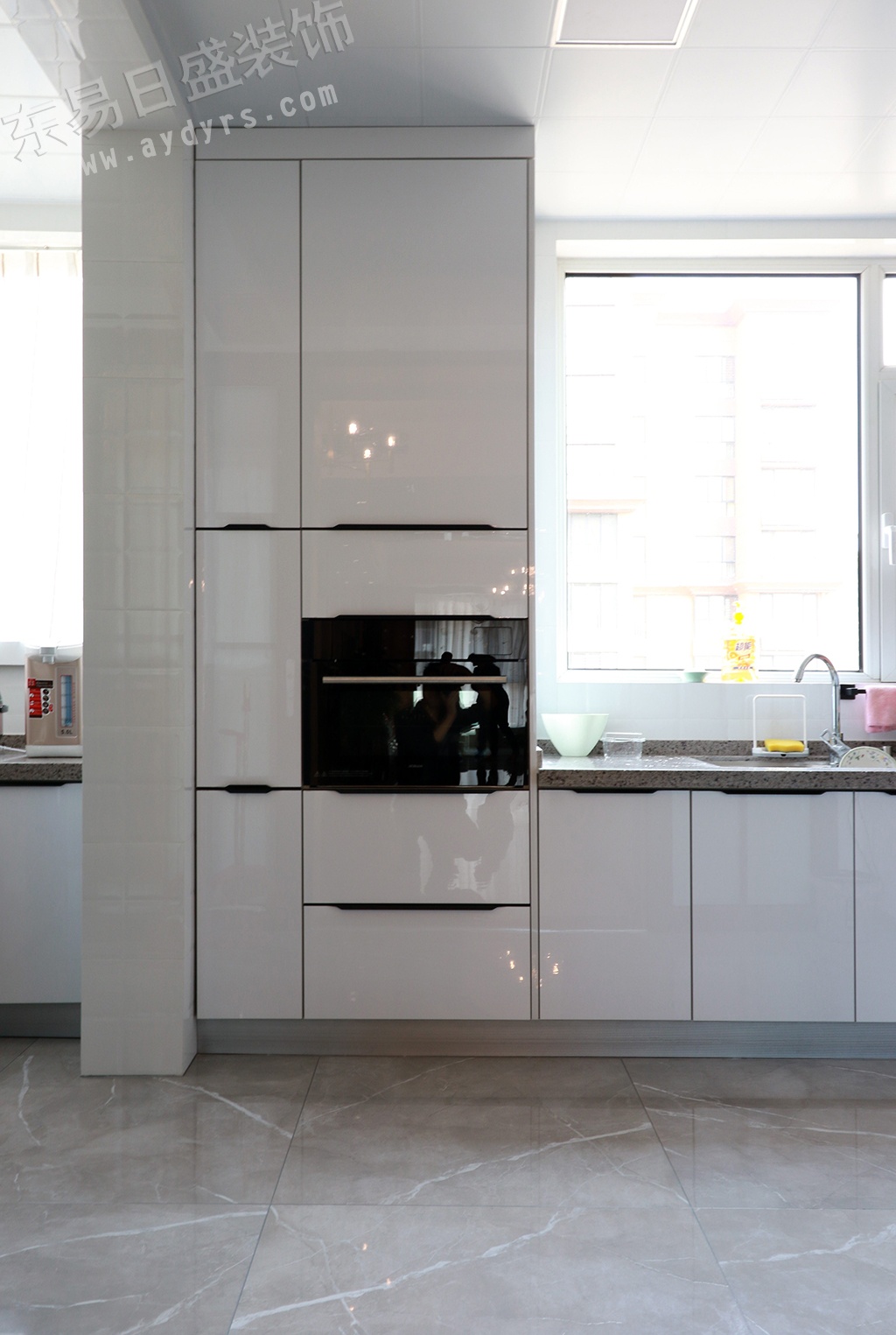 合理利用有限的空間,設計出適合業主的家居環境,懸掛式壁柜可以儲放雜物,多功能洗手臺下設計出,洗衣機擺放空格和儲物柜。既不遮擋陽光,也不會減少您活動的空間。